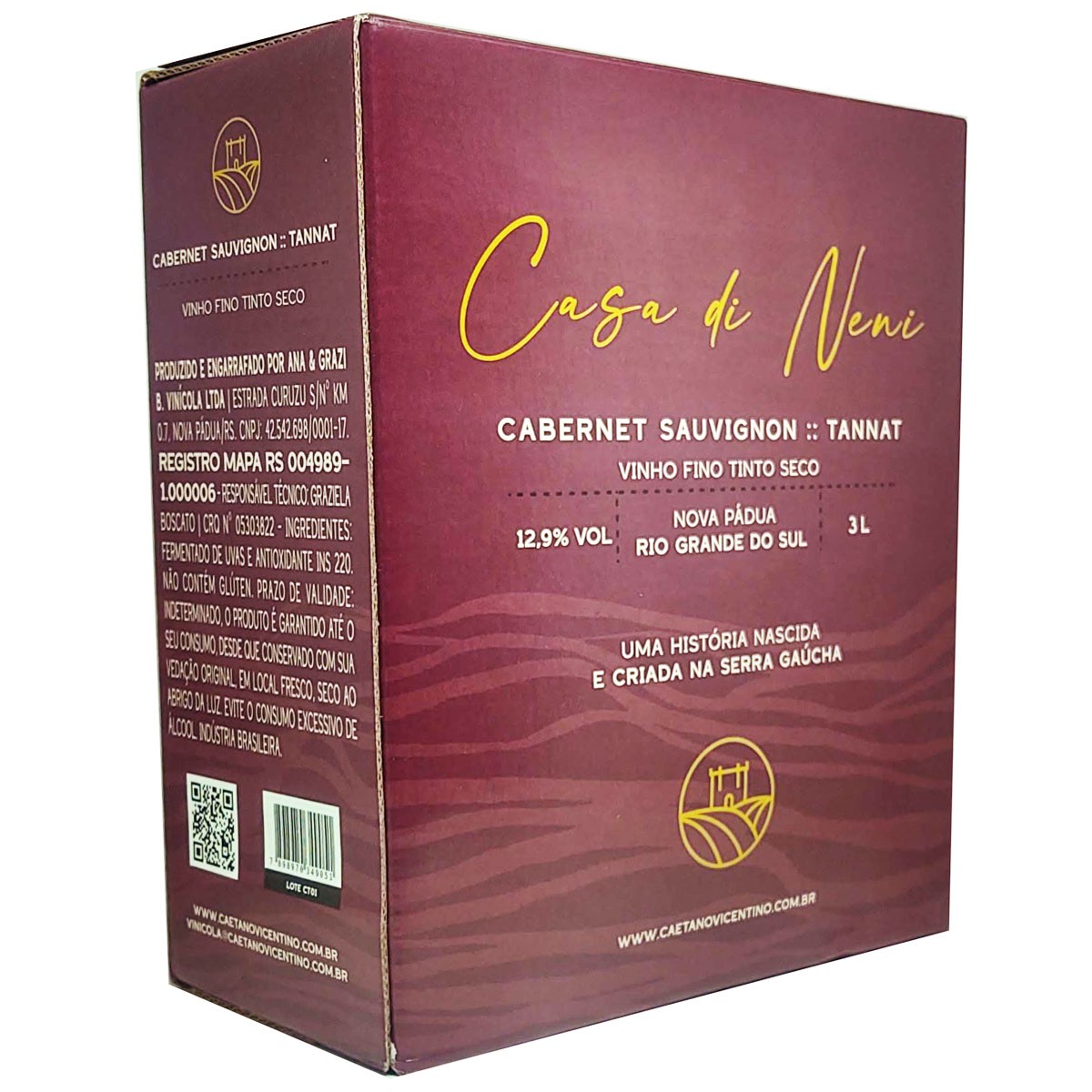 O Vinho Casa di Neni Cabernet Sauvignon Tannat é elaborado com um blend bem equilibrado e estruturado das uvas Tannat e Cabernet Sauvignon.