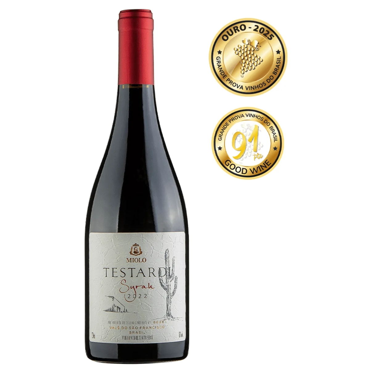 O Vinho Miolo Testardi Syrah é a expressão máxima da viticultura de precisão no Vale do São Francisco, Bahia. Elaborado pela Vinícola Ouro Verde (Miolo Wine Group), este tinto seco 100% Syrah destaca-se por sua estrutura robusta e complexidade aromática. Com envelhecimento cuidadoso em barricas de carvalho francês, apresenta uma coloração rubi profunda e notas intensas de frutas negras maduras, pimenta-preta e especiarias.